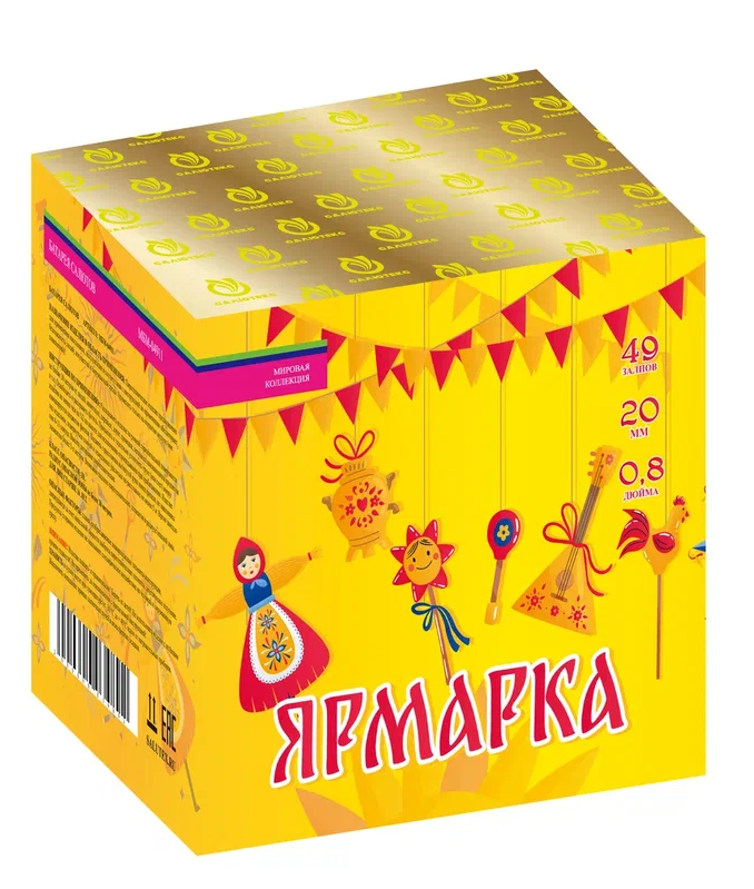 Описание: «Ярмарка» превращает небо в место веселья и развлечений. Ее разноцветные залпы напоминают о множестве ярких лавок и аттракционов, создавая атмосферу настоящего праздника. Вспышки этой батареи салютов радуют глаз разнообразием цветов и форм, создавая впечатление, что каждый залп - это новый удивительный аттракцион. Эта батарея салютов идеально подходит для семейных мероприятий, где важно создать волшебную и радостную атмосферу.