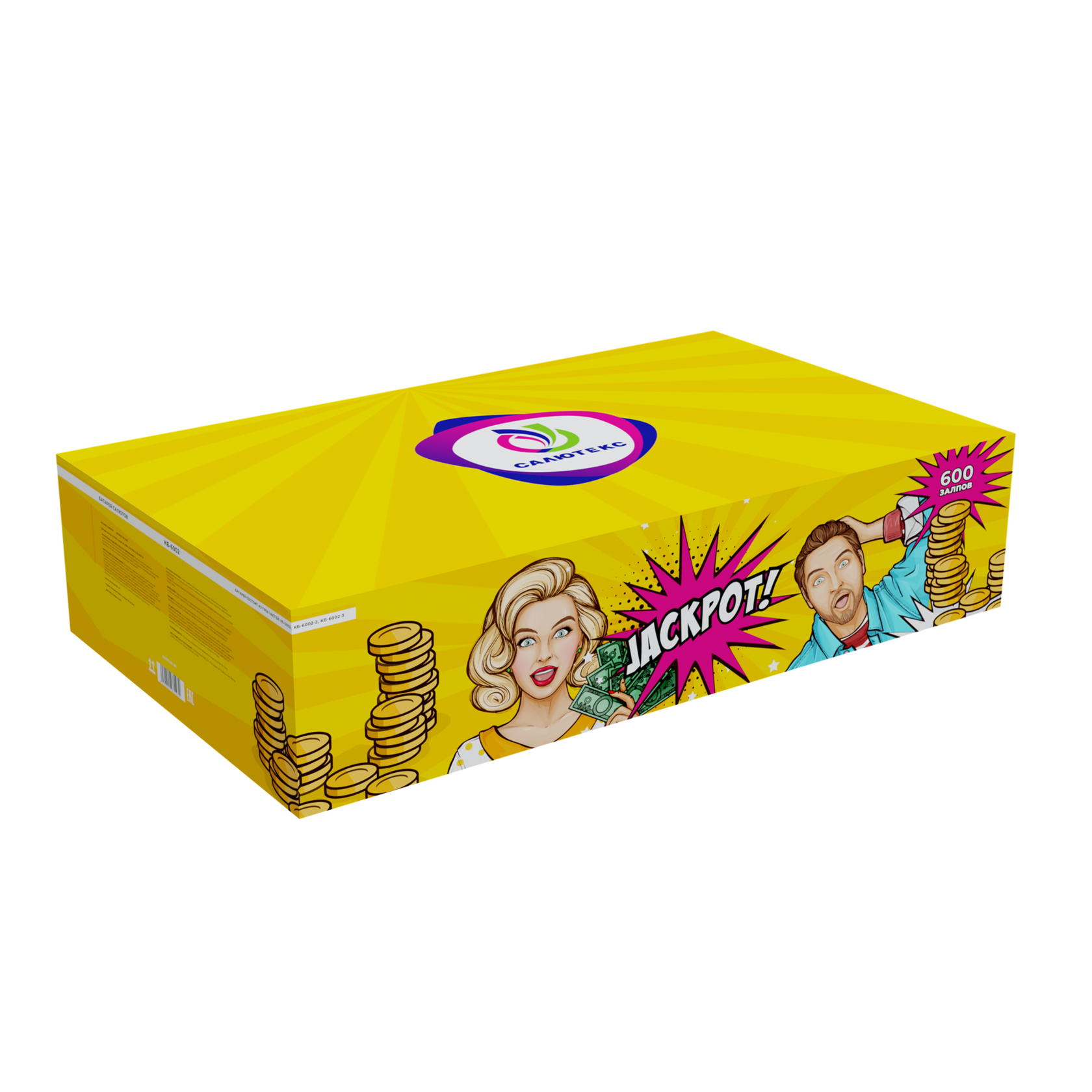 Описание: Батарея салютов «Джекпот» - это настоящее сокровище в мире пиротехники, символизирующее удачу и богатство. Каждый залп этой батареи является воплощением триумфа и радости, заполняя небо яркими вспышками, которые напоминают о мерцании золотых монет и драгоценных камней. Великолепные золотые и серебряные хвосты, вспыхивающие в ночном небе, создают ощущение волшебства и великолепия.