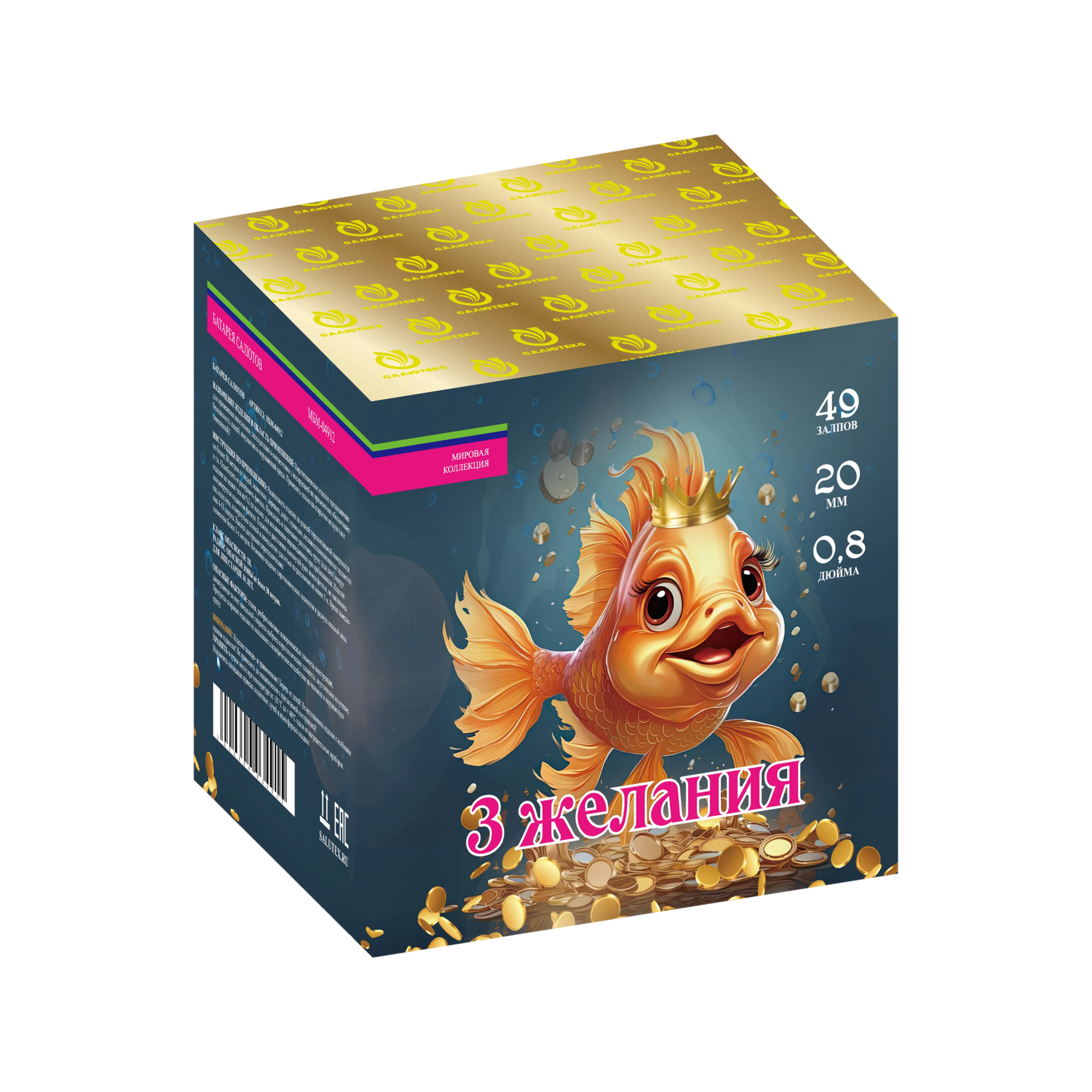 Описание: «Три желания» создает ощущение волшебства и загадочности. Каждый залп этой батареи салютов словно исполняет одно из загаданных желаний, озаряя небо яркими и многогранными цветами. Эта батарея идеальна для вечеров, где хочется создать атмосферу чуда и волшебства.
